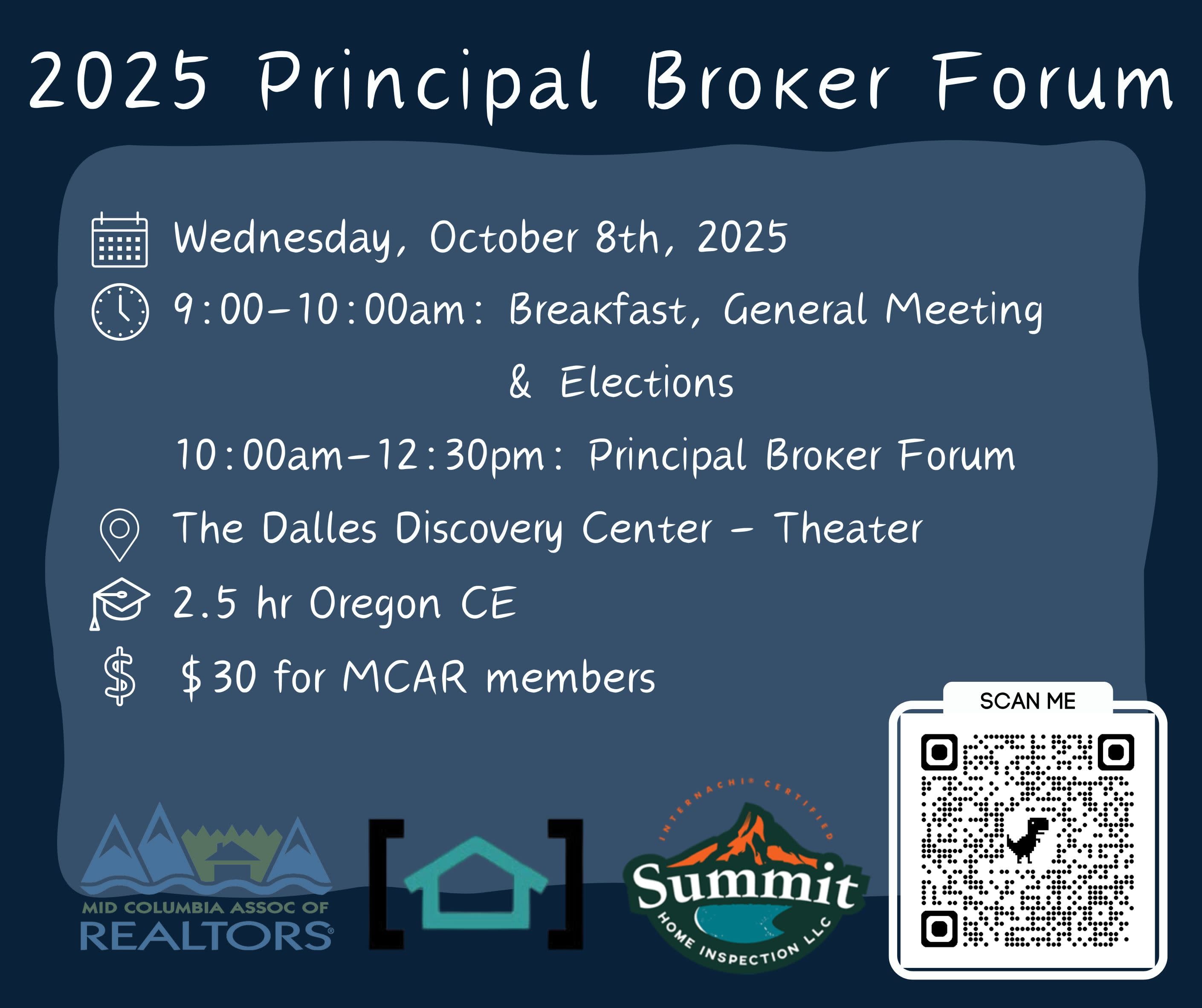 2025 Principal Broker Forum & MCAR General Elections Don’t miss this essential annual event! Hear directly from Principal Brokers as they share trends, challenges, and insights from real estate transactions and the market so far this year. Come prepared with your questions—members can submit them in advance (stay tuned for this opportunity) or ask during the panel as time allows. We’ll also be holding the MCAR General Elections, so your attendance is especially important. Enjoy complimentary breakfast and coffee as you connect, learn, and help shape the future of our association.